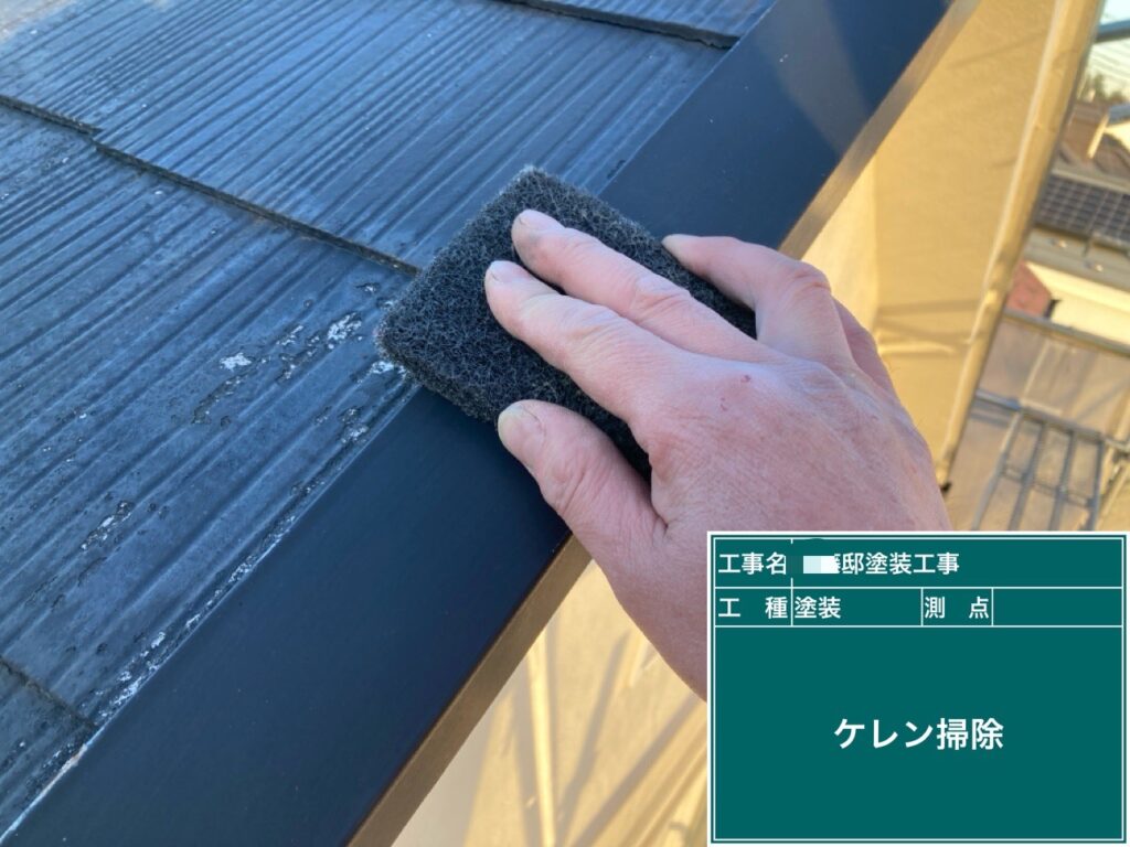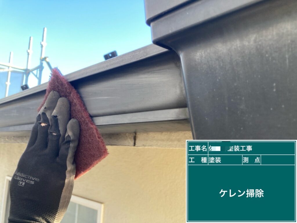 鉄部や雨樋をケレン清掃します。