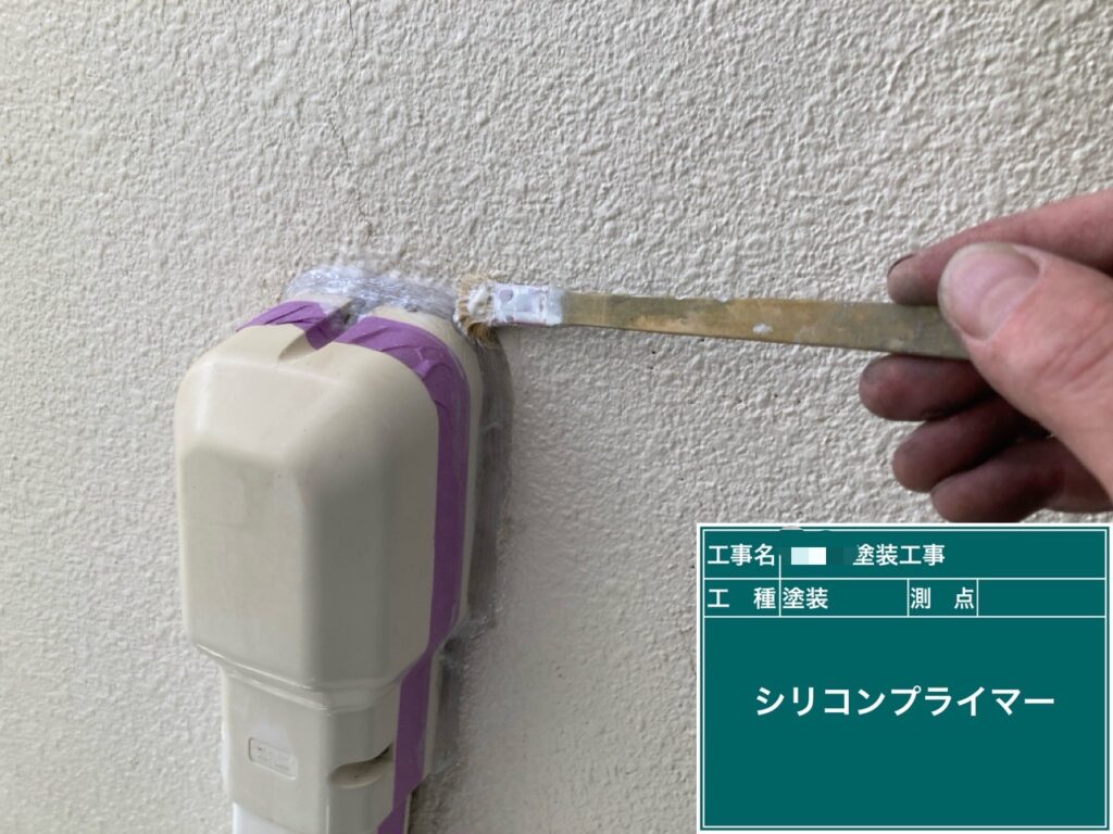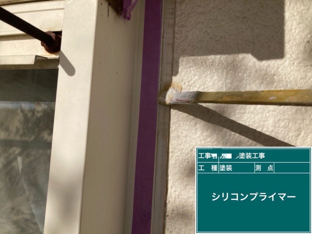 シリコンでシールしてある所は塗料をはじいてしまうので塗料が食いつくようにシリコンプライマーを塗ります。