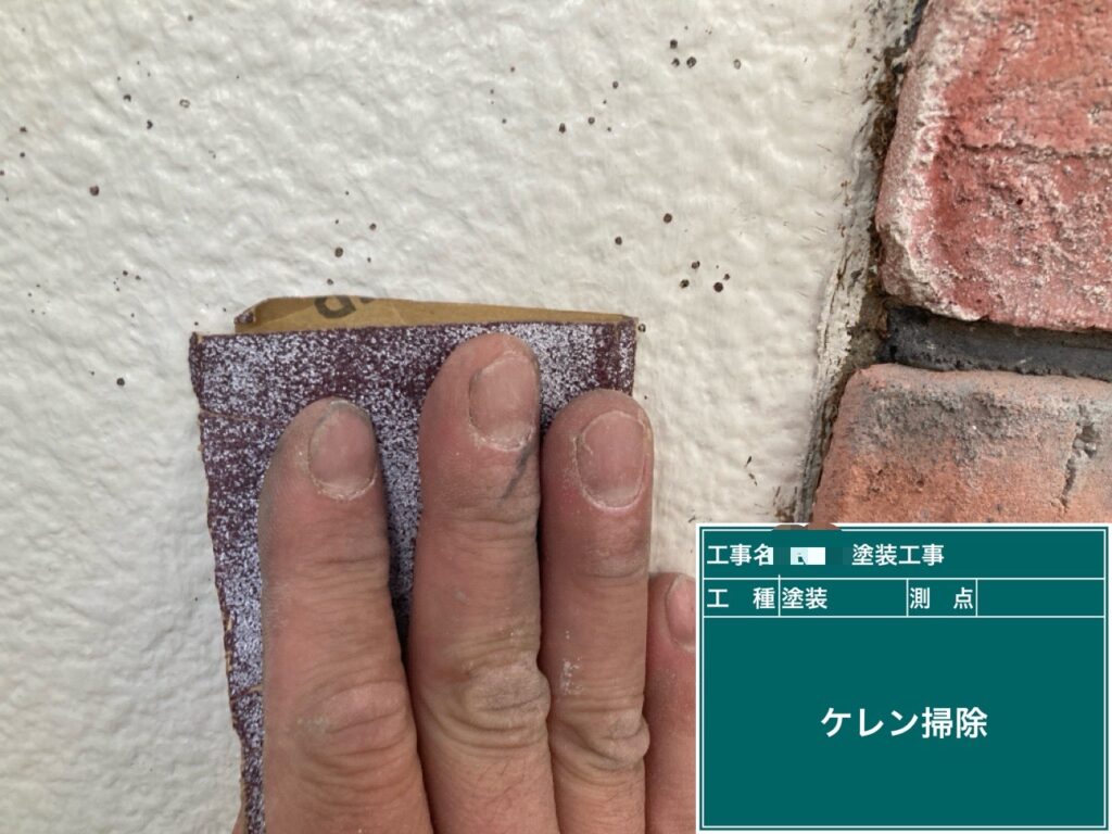 外壁に蔦があった所もケレン清掃します。蔦の跡はトーチで軽く焼く事もあります。