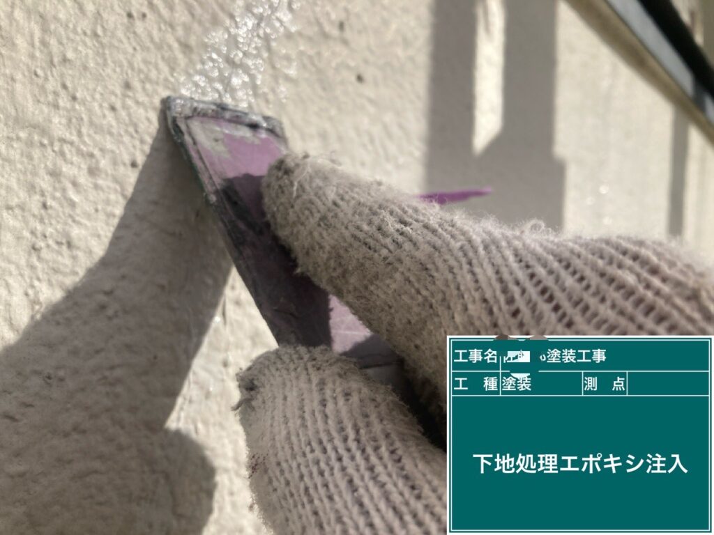 お疲れ様です。奥崎塗装です。 引き続き下地処理をしていきます。 鉄部に錆止めを塗ります。 棟板金の釘を打ち直した所とジョイント部にシールをします。 外壁のクラック(ひび割れ)にスムースエポを使います。ハンドスムーサーを使い押し込みながらエポキシを注入します。 ヘラでならします。 余分な材料をウエスで拭き取ります。 外壁の塗膜が浮いている所がありましたのでケレンをします。 下塗りにシーラーを塗ります。 肌合わせをします。 よく乾かしまして屋根の下塗りや付帯部の中塗りを塗ります。 代表 奥崎 一級塗装技能士の奥崎です。お見積りから施工まで私がご対応致します。 お気軽にお問い合わせ下さい! 無料診断実施中!外壁や屋根の塗り替えなら、小平市の奥崎塗装までお問い合わせ下さい! 042-345-3244 メールフォームはこちら ※お問い合わせ以外の営業電話、メールは固くお断り致します。