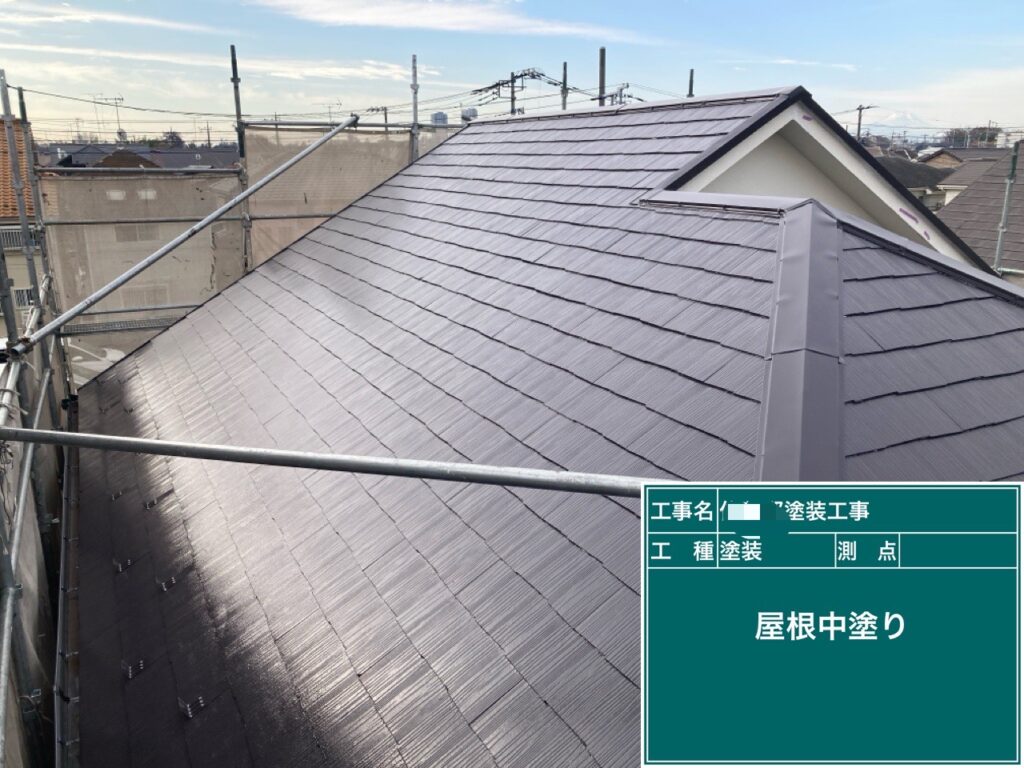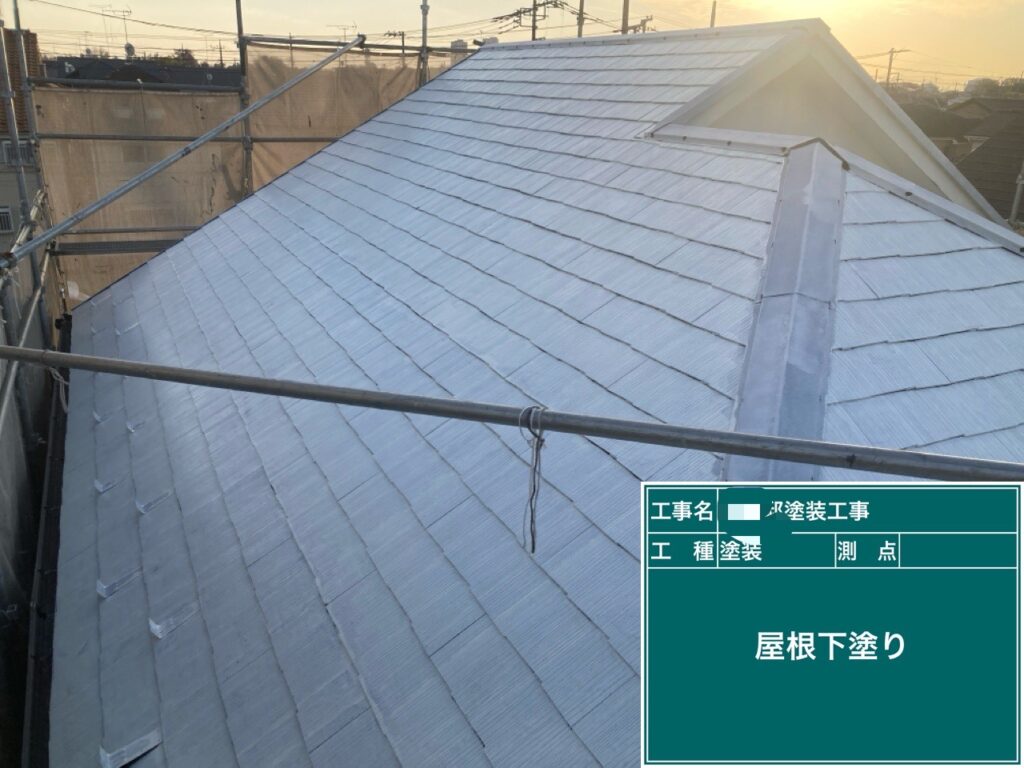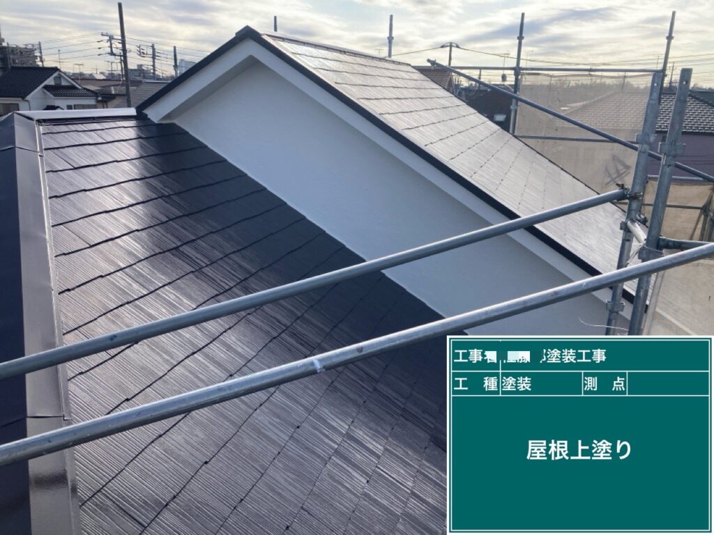 お疲れ様です。奥崎塗装です。 冬の屋根塗装は夜露の事を考えて塗り始めは早くて10時から、塗りおわりは15時30分くらいには作業を終わらせる様にしております。 屋根の施工前から上塗りまでの写真ですが1日1行程の作業です。 西面です。 東面です。 下塗りにはサーモアイシーラーを塗り中塗り上塗りには無機遮熱塗料グランセラベスト2液ファイン遮熱を使いました。 代表 奥崎 一級塗装技能士の奥崎です。お見積りから施工まで私がご対応致します。 お気軽にお問い合わせ下さい! 無料診断実施中!外壁や屋根の塗り替えなら、小平市の奥崎塗装までお問い合わせ下さい! 042-345-3244 メールフォームはこちら ※お問い合わせ以外の営業電話、メールは固くお断り致します。