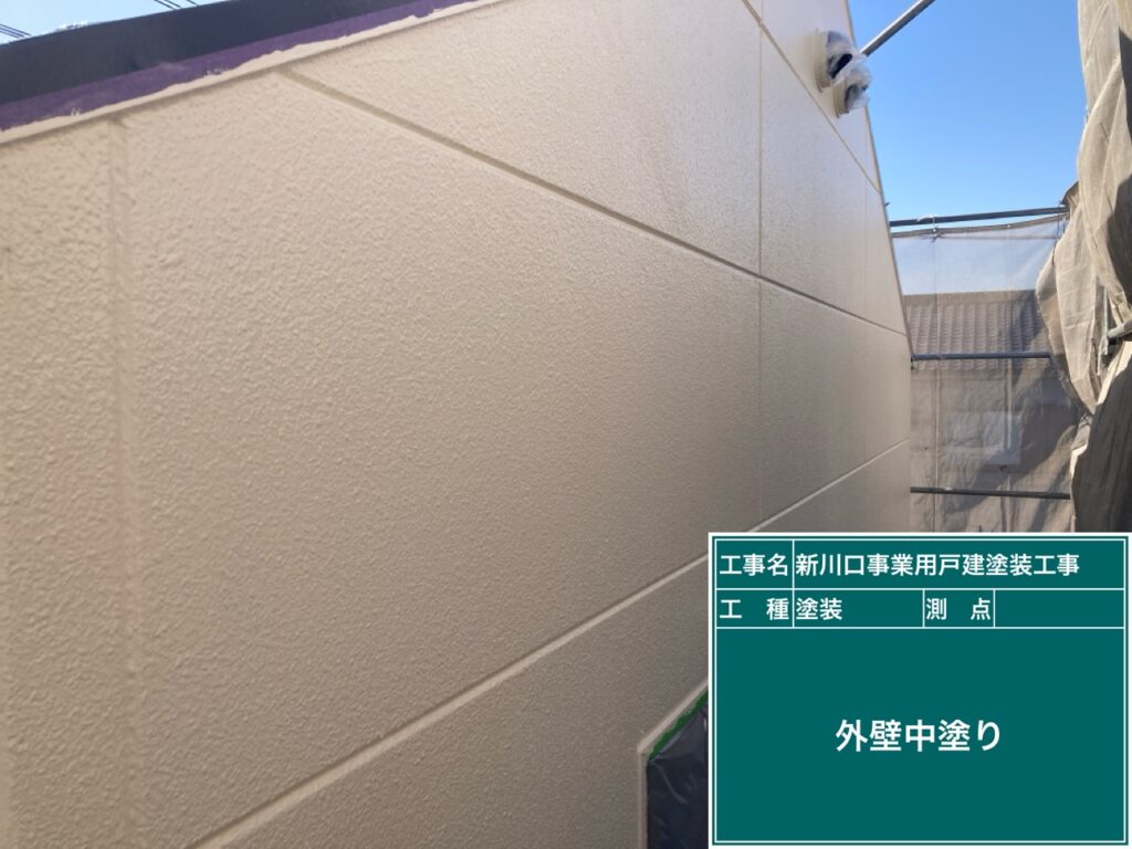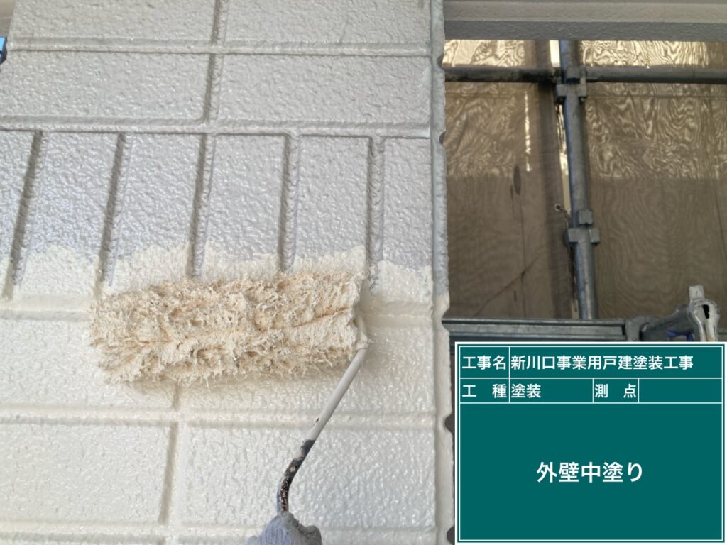 下塗りが乾きましたら中塗りにシリコン樹脂塗料を塗ります。