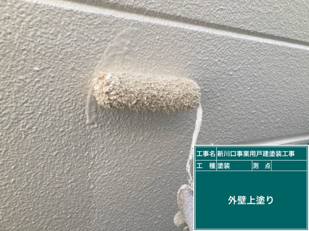 中塗りが乾きましたら上塗りにシリコン樹脂塗料を塗ります。